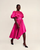 Divine , classy and a little sassy. Asymmetric side opening cutout with meticulously pleated bodice and gathered bodice with puffy sleeves .