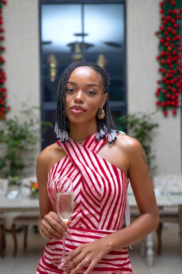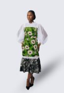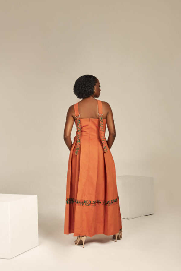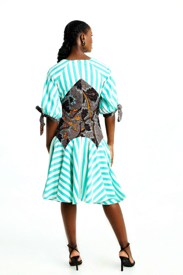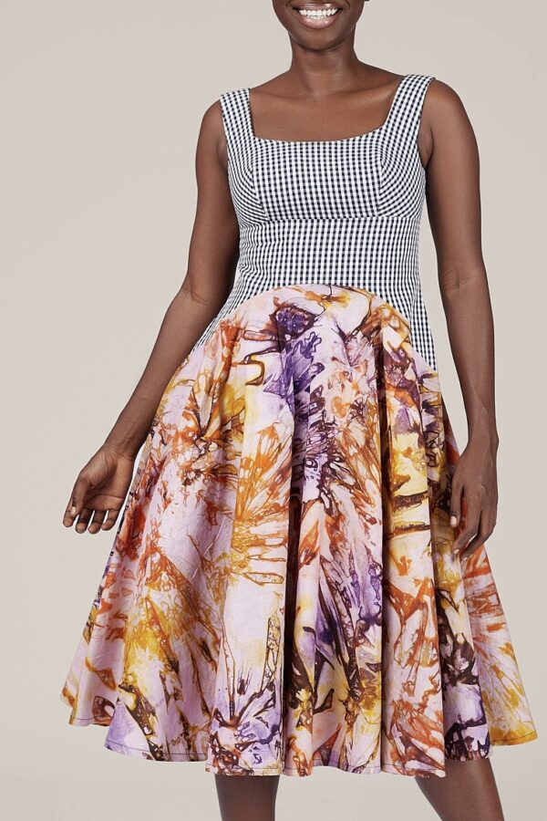 - Midi-length dress made from African tie-dye fabric
